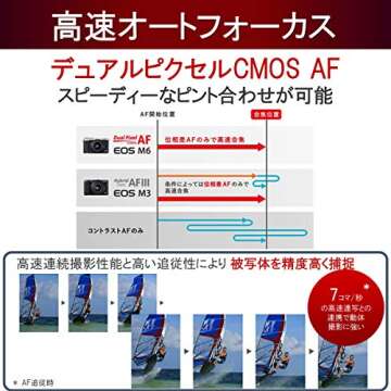 Equipped with a 24.2-megapixel APS-C sensor, the EOS M6 delivers exceptional image quality with remarkable details and vibrant colors. The Dual Pixel AF system ensures fast and accurate focusing, making it easier to track moving subjects, while the ISO sensitivity range of 100-25600 allows for great performance in low-light conditions. Enjoy the freedom of shooting in various settings and creative conditions without compromising on quality.