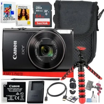 Canon PowerShot IXY 650 / ELPH 360 HS Compact Digital Camera 12x Optical Zoom (Black) Bundle with 64GB Memory Card + Camera Case + Card Reader + Spider Tripod + More (12pc Bundle) (Renewed)