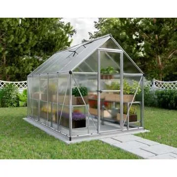 Canopia 6x10 Greenhouse Kit, Hobby Walk-In Twin-Wall UV Polycarbonate Heavy Duty Aluminum Frame, Lockable Door, Adjustable Roof Vent, Rain Gutters, Galvanized Steel Base, Mythos (Silver)