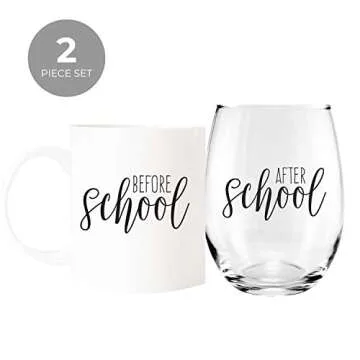 Canopy Street Before School/After School Coffee Mug And Stemless Wine Cup Gift Set/Teacher Appreciation/Daycare Provider Thank You/Back To School Drinkware
