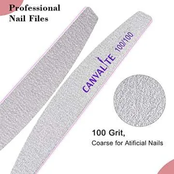 Canvalite 12pcs 100 Grit Nail Files for Acrylic Nails Emery Board Nail Styling Tools for Home and Salon Use