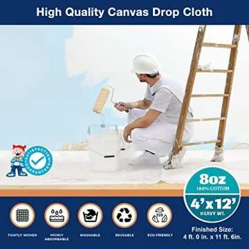 Show moreIntroducing the extraordinary TuffBoy Canvas Drop Cloth, your ultimate companion for all painting and crafting needs! Measuring an impressive 4x12 ft and constructed from high-quality cotton duck material, this versatile tarp is specially designed for both professionals and DIY enthusiasts. Whether you're protecting your floors during a painting project or covering your furniture, this heavy-duty canvas is your best defense against paint spills and dust. Imagine the peace of mind knowing your surfaces are safe, all thanks to its highly absorbent design that ensures an effortless cleanup after every creative endeavor.