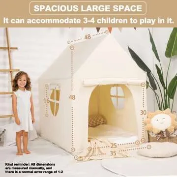 With dimensions of approximately 49 inches long, 35 inches wide, and 47 inches high, this spacious tent can comfortably accommodate 3-4 children at once, making it the perfect spot for tea parties, storytelling, or even creative role-playing scenes from their favorite fairy tales. Designed with a calming color scheme and a minimalist aesthetic, this playhouse blends seamlessly into any room, enhancing your home decor while offering a dedicated space for your child's adventures.