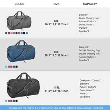 Unlike other duffels on the market, the Canway Travel Duffel Bag integrates **multiple features** that cater to a modern traveler’s needs. While competing brands often focus on minimal storage, the generous **85L capacity** of the Canway ensures you have room for everything—from clothes to shoes, with designated compartments keeping items organized. In addition, the **lightweight** design matches or surpasses many rigid alternatives, allowing you to pack more without the extra burden.