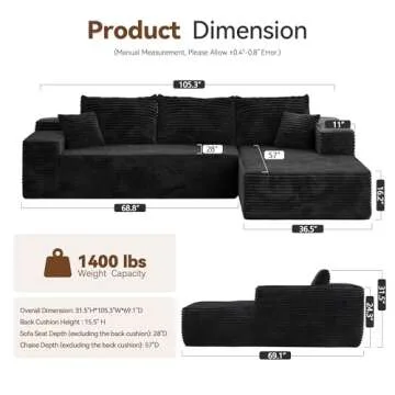 Show more Introducing the Modular Sectional Couch – your ultimate solution for style, comfort, and versatility! This L-shaped sectional sofa is meticulously designed to adapt to your living space, blending seamlessly with any decor. Its minimalistic style not only optimizes your space but also adds a touch of modern elegance, making it the perfect centerpiece for your living room.