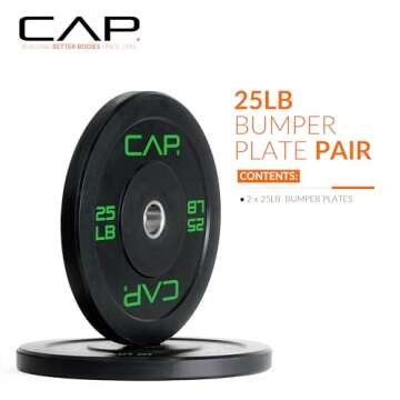 CAP Barbell Budget Olympic Bumper Plate Set with Green Logo, Black, 25 lb Pair