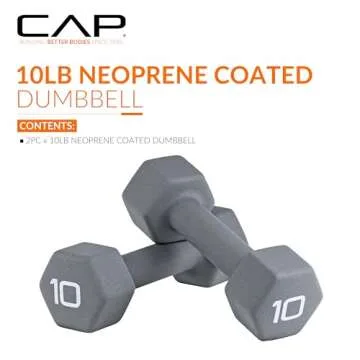 CAP Barbell Neoprene Coated Dumbbell Weights (Pair), gray, 10 pound (SDN5P-20)