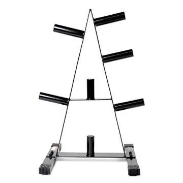 The rack has a weight capacity of up to 500 lbs, making it ideal for various Olympic weight plates.