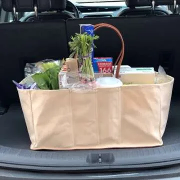 CapaBunga Grocery Tote Bag with Handles - 5 Pocket Large Utility Tote Bag - Heavy Duty Canvas Utility Bags with Vegan Leather Base - Reusable Shopping Bags for Groceries - Natural Grocery Bag