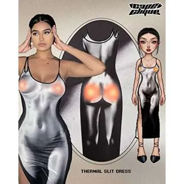 CAPE CLIQUE Dress for Women Thermal Mesh Body Print Spaghetti Strap Split Hem Scoop Neck Midi Dress,Black,Small