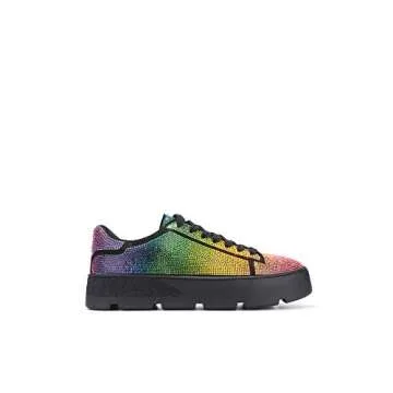 Show moreIntroducing the dazzling **Cape Robbin Euro Flatform Sneakers**, the ultimate footwear choice for fashion-forward women who love to shine! These sneakers are not just shoes; they're a statement piece that effortlessly combines style and comfort. Designed with a stunning array of **faux rhinestones**, they catch the light beautifully, making them perfect for any occasion. With a **lace-up closure** for a secure fit, a cushioned collar and tongue for added comfort, and a lightly padded insole, these sneakers ensure you look fabulous without sacrificing comfort. The **durable rubber midsole** provides stability, while the approximate **1-inch heel height** adds a touch of elegance to your look. Perfectly sized at **9**, these colorful sneakers will elevate your outfit to the next level, ensuring you turn heads wherever you go!