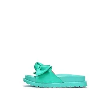 Cape Robbin Feelin Sandals Slides, Womens Summer Sandals Slip On with Bow, Stylish Women Sandals with Bow - Teal Size 11