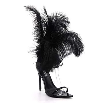 Cape Robbin Jazmine Black Feather Strappy Lace Up Pointy Open Toe High Sandal - Elevate Your Style