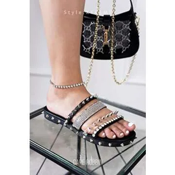 Cape Robbin Xtreme Studded Womens Sandals - Fashion Slides for Women with Spikes - Comfortable Slip-On Flat Sandals for Women - Summer Sandals for Women 2024 - Black Size 9