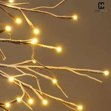 CAPHAUS 4 Feet, 48 inch Full Artificial Lighted Flocked Christmas Tree w/ 122 LED Lights, Twinkling Bare Branch Tree w/Warm White Light, Star Tree Top for Festival, Holiday Decoration Indoor