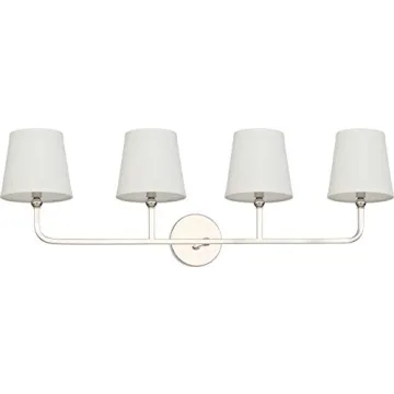 Show moreTransform your bathroom with the elegant Capital Lighting 119341PN-674 Dawson Decorative Vanity Wall Light. Meticulously designed to blend style with functionality, this vanity fixture showcases a contemporary aesthetic with its polished nickel finish and decorative fabric stay-straight shades. With dimensions of 12 inches high by 35.25 inches wide and a depth of 7.25 inches, it perfectly complements various bathroom styles while providing ample illumination. Weighing just 3.5 pounds, installation is made easy with the included hardware that mounts the fixture to your existing junction box.