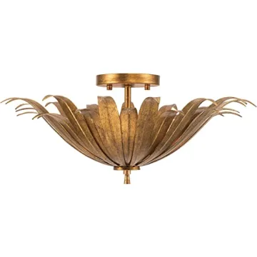 Show moreIntroducing the Capital Lighting 249531AG Eden Semi Flush Ceiling Light, a stunning blend of traditional design and botanical inspiration. This semi flush mount fixture, measuring 8.5 inches high and 18 inches wide, offers an elegant touch to your indoor spaces without overwhelming the aesthetics. Its antique gold finish beautifully complements a variety of décor styles, making it a versatile choice for those looking to enhance their home’s ambiance. Equipped with three E12 candelabra sockets, it allows for a maximum wattage of 60 watts per bulb, delivering brilliant illumination tailored to your preferences. Please note that while the bulbs are not included, we recommend using G16 bulbs for optimal performance.