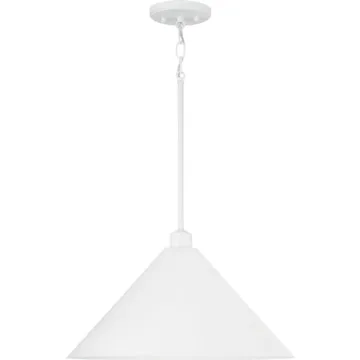 Show moreIlluminate your space with the elegance and modern charm of the Capital Lighting Alden Pendant Ceiling Light. This stunning pendant features a sleek, industrial design crafted from premium metal, showcasing a beautiful matte white finish that seamlessly integrates with any decor. With dimensions of 10.25 inches in height and 18 inches in width, it's perfectly sized to grace your kitchen, dining area, or entryway with captivating light. The adjustable height feature, reaching a maximum of 61 inches, allows you to customize its placement to complement your home perfectly.