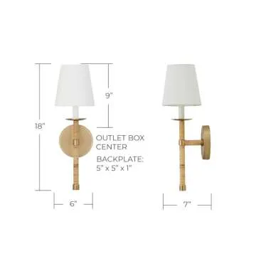 Capital Lighting 647211MA-705 Tulum White Fabric Shade with Handcraft Rattan Torchiere Wall Sconce, 1-Light 60 Watt, 18" H x 6" W, Matte Brass