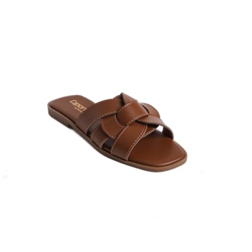 Capone Outfitters Lauren Women's Banded Flat Sandal Slip On (Tan, US Footwear Size System, Adult, Women, Numeric, Medium, 7.5)
