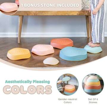 These stepping stones are incredibly versatile, serving as excellent tools in various settings, including homes, daycares, therapy sessions, and outdoor play areas. Children can use them to create imaginative obstacle courses or as part of educational games, all while developing critical physical skills. After playtime, they conveniently stack for easy storage, making cleanup a breeze for busy parents.