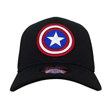 Unleash your inner hero with the **Captain America Shield Black 39Thirty Cap** by New Era! This officially licensed Marvel apparel doesn't just make a fashion statement; it embodies a legacy of strength, bravery, and patriotism. With its sleek black finish, this fitted hat provides both style and comfort, making it suitable for everyday wear or special events. The iconic Captain America shield is intricately stitched onto the front, ensuring that you'll stand out wherever you go. Additionally, the stitched...