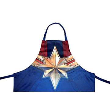 Captain Marvel Kitchen Apron - Iconic Superhero Design for Cooking Fans - Polyester & Adjustable