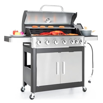 Captiva Designs 6-Burner Propane BBQ Grill with Side Burner | 65,800 BTU