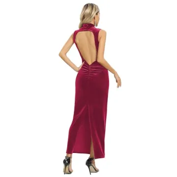 Show moreIntroducing the Capuffy Women Backless Velvet Maxi Dress , an alluring addition to your wardrobe that effortlessly blends elegance with a touch of sass. Made from a luxurious fabric blend of 95% polyester and 5% spandex, this dress offers a beautiful crush velvet finish that not only looks stunning but feels incredibly comfortable against the skin. The design features a turtleneck and a captivating sleeveless style, accentuated by a charming open back that adds a hint of allure to any outfit. The pull-on styling with a loop button neck closure ensures an easy fit, while the ruched bum with back seam slit provides a flattering silhouette that beautifully enhances your curves.
