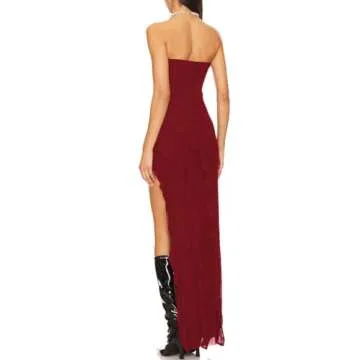 While there are numerous evening dresses available on the market, the Capuffy Tube Strapless Maxi Dress sets itself apart with its exquisite attention to detail and comfortable fit. Unlike many dresses that sacrifice comfort for style, the blend of nylon and spandex ensures that this gown retains its shape while allowing for ease of movement. Its unique ruffle design and high slit create a stunning visual impact that most other gowns simply cannot match, making it a true standout in any wardrobe.