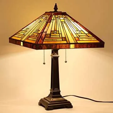 Capulina Tiffany Style Table Lamp Mission Style Tiffany Lamp 2-Light 16X16X24 Inches Amber Brown Stained Glass Desk Lamp Decor for Bedrooms Living Room Study Home Office