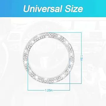 Measuring at 1.5 inches in outer diameter and 1.25 inches in inner diameter, this universal fit design accommodates most cars, SUVs, and trucks. The package includes one shimmering bling ring emblem and adhesive tape for simple installation. With just a few straightforward steps, you can install your new accessory—simply clean the button, remove the adhesive tape, position it accurately, and press firmly for a secure fit. It's that easy!