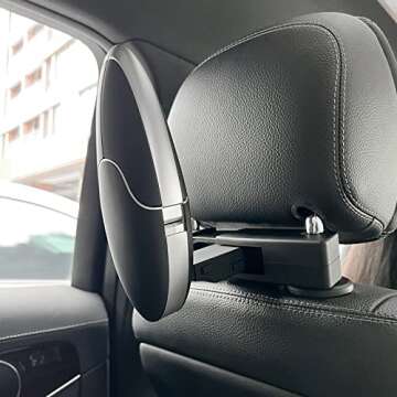 Show more The ENGYNC Headrest Hook is more than just a car accessory; it's a stylish solution to keep your vehicle organized and clutter-free. This universally fitting hanger can seamlessly attach to nearly all cars and SUVs, accommodating headrest rods that measure between 4.80 and 5.51 inches. No more messy back seats filled with hangers or bags—this innovative hanger enhances your journey by providing a designated spot for your clothes and belongings. Made with a user-friendly design, it allows you to prevent wrinkles in suits, coats, and shirts, ensuring you always look polished and professional.