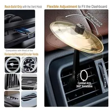 Show moreEnhance your driving experience with the **Car Cymbal Air Vent** – a playful, innovative accessory designed to bring music into your daily commute! Made from **high-quality alloy material**, this mini drum crash cymbal delivers a delightful, crisp tone that complements various musical rhythms. Whether you're stuck in traffic or cruising down open roads, this fun addition transforms your car into a mini studio where music meets mobility. Its clever design allows you to easily attach it to both horizontal and vertical vents in seconds, promising a snug fit that ensures an enjoyable drumming experience.