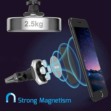 The Veckle phone holder stands out with its 360-degree rotation, allowing you to find your preferred viewing angle effortlessly. Additionally, its installation process is a breeze—simply clip it onto your car's air vent and you’re good to go! This universal mount features strong magnetic technology that keeps your device secure on bumpy roads, making it the ideal companion for any journey.