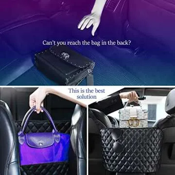 Car Seat Storage Organizer and Handbag Holder, Upgraded Leather Handbag Holder for Purse Storage Phone Documents Pocket, Barrier of Backseat Pet Kids