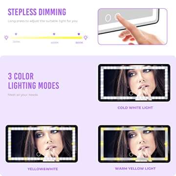 Illuminate your makeup routine with its 3 color modes: cool white, warm yellow, and a combination of both. With a total of 60 lights—48 white and 12 yellow—this mirror delivers brightness that is 40% superior yet uses 60% less energy than typical bulbs. The memory function ensures your last brightness and color settings are retained, making your experience more personal and easier each time you use it.