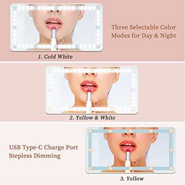 Car Visor Vanity Mirror, Car Makeup Mirror with Dimmer Touch Control 60 LED Lights, Travel Cosmetic Mirror 3 Light Mode Built-in Lithium Battery with Charge Cable