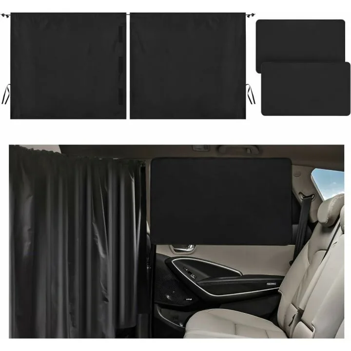 Premium Car Window Shades - Blackout Privacy Sunshade & Divider Curtain