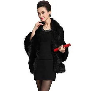 Caracilia Women Bridal Faux Fur Shawl Wraps Cloak Coat Sweater - Elegant Black Beauty