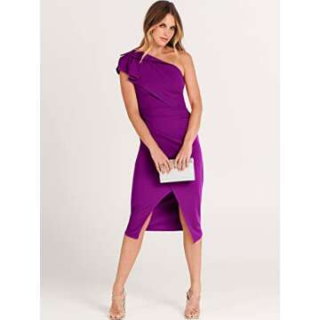 Caracilia Women One Shoulder Midi Dress - Elegant Cocktail Ruffle Wrap