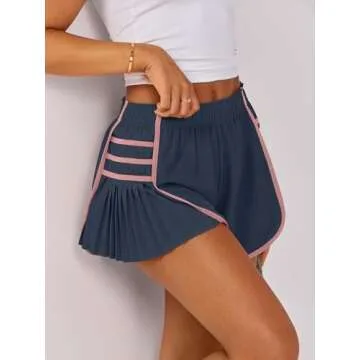 Caracilia Women Running Shorts Flowy Pleated Athletic Shorts Summer High Waisted Tennis Sporty Workout Gym Shorts Navy Medium