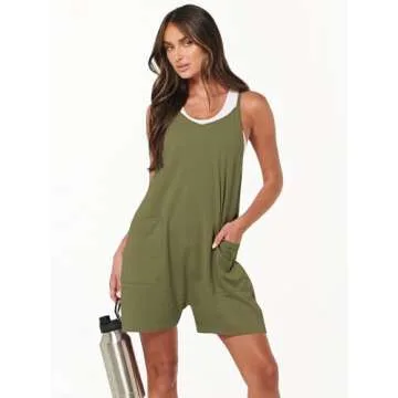 Show more Introducing the Caracilia Women's Summer Casual Rompers, the ultimate addition to your warm weather wardrobe! This stylish romper showcases a chic sleeveless design with adjustable spaghetti straps, ensuring a comfortable and customizable fit. The loose silhouette flatters all body types, making it the perfect choice for any outing. Featuring a trendy V-neck and racerback style, this romper effortlessly combines fashion and function, becoming your go-to outfit for summer adventures. With practical pockets, it’s not just about style; it’s about convenience too! Crafted from high-quality, super soft, and stretchy materials, this lightweight romper is designed for maximum comfort without compromising on style.