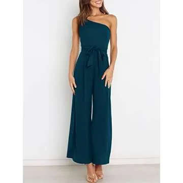 Show moreIntroducing the Caracilia Women's Summer Dressy One Shoulder Strap Tie Waist Zipper Back Wide Leg Jumpsuit – a perfect blend of elegance and comfort! Crafted from a high-quality blend of **95% polyester and 5% spandex**, this jumpsuit delivers a soft touch while offering a stretchy fit that hugs your body beautifully without sacrificing comfort. Whether you're stepping out for a casual day outdoors or attending a swanky cocktail party, this versatile outfit ensures you look fabulous and feel relaxed at all times. Its eye-catching dark blue hue adds a touch of sophistication, making it a standout piece in your wardrobe.