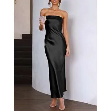 Caracilia Women's Summer Strapless Satin Tube Bodycon Backless Wedding Guest Maxi Dress 2025 Spring Formal Long Dresses Black Medium