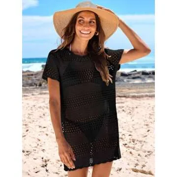 Caracilia Women Swimsuit Coverup Crochet Bathing Suit Cover Ups for Swimwear Swim Summer Bikini Beachwear Beach Dress Black Small