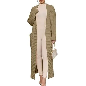 Caracilia Womens Long Cardigan Sweaters 2024 Fall Open Front Coat Long Sleeve Cable Knit Maxi Outerwear Trendy Jacket Clothes Khaki Large