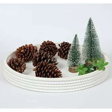 Carah & Cossh Decorative Fir Wood Tray, 16-Inch Round, White