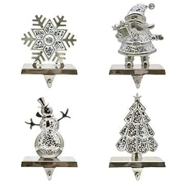 CARAKNOTS Christmas Stocking Holder for Mantel Set of 4 Silver Christmas Stocking Holders Rustic Stocking Hangers for Mantle Fireplace Stocking Hooks for Christmas Party Decoration