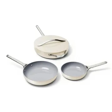 Caraway 4-Piece Fry Pan Set - Non-Stick Frying Pans (10.5” & 8”) & Non-Stick Sauté Pan - Non Toxic, PTFE & PFOA Free - Oven Safe & Compatible with All Stovetops (Gas, Electric & Induction) - Cream